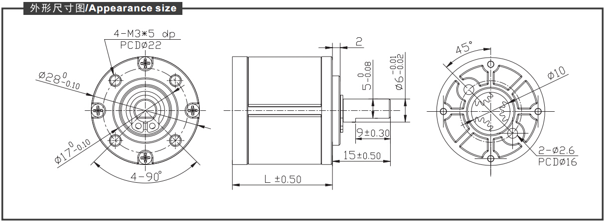輸出軸直徑為Φ6.0mm,長度可根據客戶要求定制